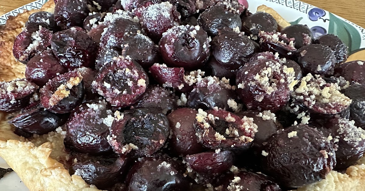 Lucy Burdette: Aš mačiau šio vyšnių deserto, kurį prieš mėnesį ar du, receptą mačiau. Jis pasiskolino receptą iš Lydia Bastianich ir nusprendžiau jį išbandyti, nes vyšnios šią vasarą buvo tokios geros. Mano pasirodė taip visiškai miela, ir tam aš turiu dvi teorijas. Kaip matote nuotraukoje, pluta atsiskleidė, kai ji iškepė. Kodėl? Numeris vienas, aš galbūt per daug dirbau tešlą, naudodamas maisto kombainą. Kitą kartą apsvarstyčiau galimybę maišyti rankomis. Antrasis numeris, valandą atšaldžius tešlą, buvo sunku sukti ploną. Kitą kartą aš galėsiu šaldyti tik 15 minučių, arba prieš riedant tešlą, tešlą atsisėsti, kad suminkštės.