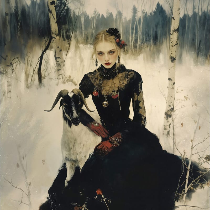 Ožiaragio simboliką dar labiau atspindi ožka, galinga Šiaurės šalių tradicijų figūra. Ožka, siejama su Toru ir vaisingumu, vėliau tapo sergėtoja dvasia, prižiūrinčia pasiruošimą Yule. Švedijoje buvo sakoma, kad Kalėdų ožka pristato dovanas ir patikrina, ar šeimos tinkamai gerbia tradicijas, o šis vaidmuo palaipsniui peraugo į šiuolaikinę Kalėdų Senelio figūrą. Ožkos ryšys su Ožiaragiu – jūros ožkos zodiako ženklu – daro jį ypač stipriu šio sezono atsakomybės, ritualo ir mito derinio simboliu.